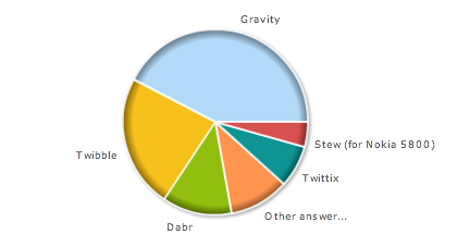 Twibble has clocked up just over half the amount of votes that Gravity has pulled in, with 23% of the vote. Dabr is sitting in third spot with 12%.