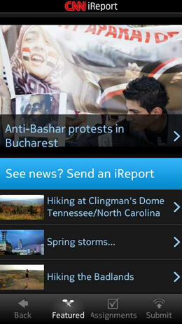 A unique factor of the CNN app is the iReport section. iReports are a CNN facility that allow members of the public to become citizen journalists by submitting an audio or video report directly to CNN. In the iReport portion of the app, you can view iReports form around the world. Also, app users can submit iReports as well, directly in the CNN Application. For example, on my Nokia N8, i can either select a video or photo from my library and submit an iReport on an event or story I think the world would find interesting.