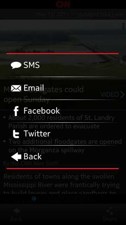 As you read a news story in detail, you have the option of sharing the story via SMS, Email, Facebook or Twitter. By giving this option, CNN makes it possible to share stories you find interesting with your friends and colleagues. Adding to this, with all the options ranging from SMS to Twitter, you can reach your friends and family, no matter what mediums they’re present on.