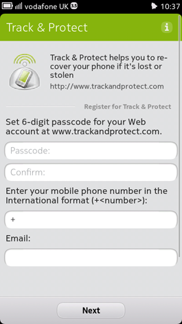 It’s from the Web service that you can do some cool tricks. Let’s say you’ve stored some important documents on your Nokia N9, the type that you wouldn’t want anybody looking at. You can wipe all the information from your phone remotely, by logging onto the Track&Trace website and pressing Wipe! and by pressing the Lock button you can do exactly that, lock the phone. But before you do either of these, you should press the Get location button. This will locate your phone and show you where it is using Ovi Maps. After all, you don’t want to wipe everything off your phone if it turns out you’ve left it at home and not on the bus. Do you?