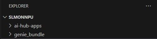• コードに合わせてフォルダーを構成: AI Hub Apps リポジトリをクローンしたフォルダーの外側に「genie_bundle」というフォルダーを作成します。この genie_bundle フォルダーに、AI Hub Apps のサンプル リポジトリから必要な構成ファイルを選択してコピーします。