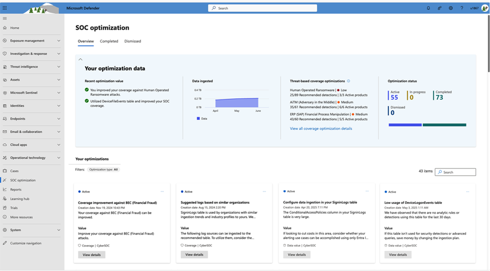 Defender ポータルは、SOC 最適化やサマリールールなど、コストとデータ最適化の機能を提供しています。これらの機能を活用して、データ管理を最適化、コスト削減、カバレッジ拡大、SIEM の ROI を向上させてください。これにより、セキュリティ オペレーションをより効果的かつ効率的に管理できるようになります。