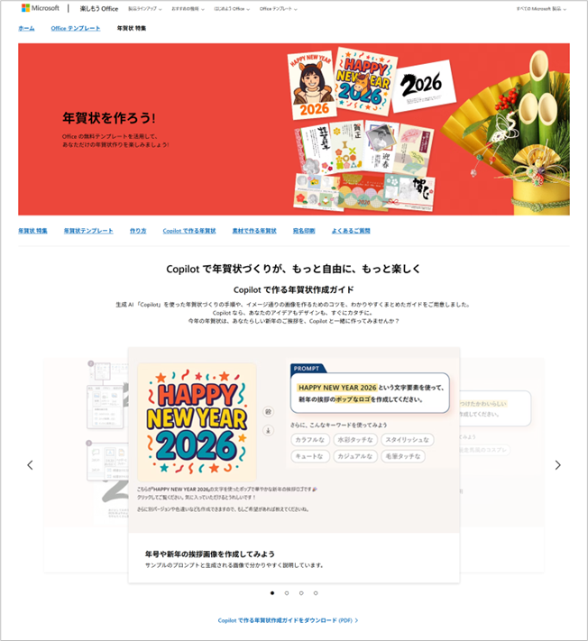 日本マイクロソフト公式サイト「楽しもう Office」では、Copilot を使った年賀状づくりの手順や、イメージ通りの画像を作るためのコツをまとめた最新ガイドを公開中です。