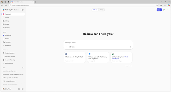Surveys エージェント: アンケートの作成、送信、分析のプロセス全体を 1 つの会話型エクスペリエンスに統合し、従業員の負担を軽減します。この構築済みエージェントを使用すれば、質問の作成からアンケートの配布、回答の追跡、結果の分析まで、ツールを切り替えることなく行えます。トレーニングに関するフィードバックの収集、従業員センチメントの測定、顧客調査の実施など、いずれの場合でも Surveys エージェントがアンケート調査の専属エキスパートの役割を担います。このエージェントは 10 月に提供を開始 (英語) しました。
