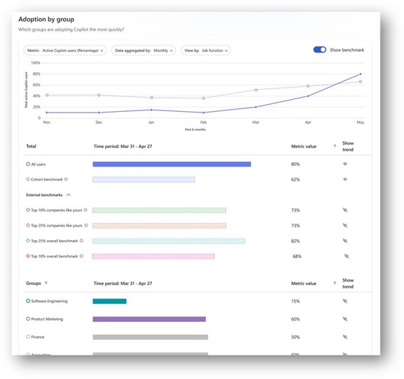 - Copilot ダッシュボードの新しいレポートとベンチマーク