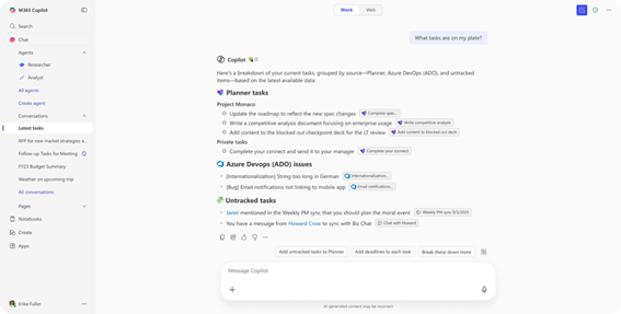 プロジェクト マネージャー エージェントは、AI を活用したプロジェクト追跡機能を通じて、業務の計画策定、整理、管理を支援します。まずは中核的なタスク管理機能を提供し、プロジェクト全体を円滑に遂行できるようにします。今後は段階的に高度な機能が追加されていく予定です。このエージェントを導入して、AI によるタスク管理支援を組織でご活用ください。3 月からパブリック プレビューを開始し、4 月から世界中で順次提供を開始します。