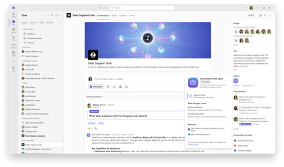 Microsoft Teams のコミュニティ機能を利用すると、Teams における従来のコラボレーションに加えて、コミュニティという形で会話したり、リーダーの積極的な関与を受けたりすることができます。アプリを切り替えることなく、Teams 内で直接コミュニティを発見して参加可能です。このたび、Teams でコミュニティのエージェント機能も利用できるようになりました。このエージェントは、既に議論された内容や指定された SharePoint サイトの情報を参照して、未回答のままとなっている質問への回答案を作成することにより、コミュニティでの会話を組織の共有ナレッジへと変換できるよう支援してくれます。この機能は 2 月からパブリック プレビューとして提供しており、4 月から世界中で順次提供を開始します。