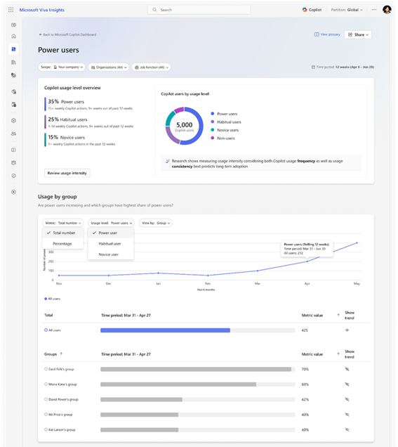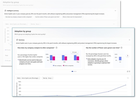 - Copilot ダッシュボードのパワー ユーザー レポートとインテリジェント サマリー