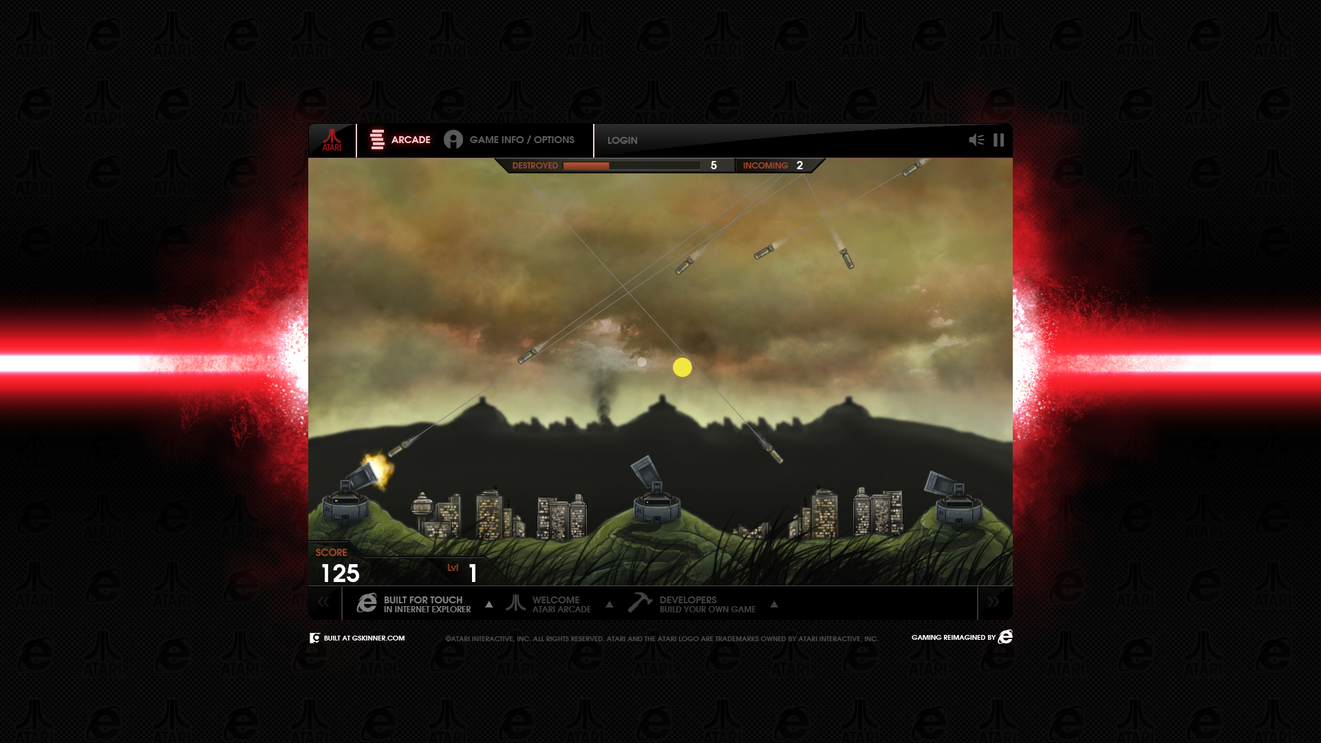 Se lanzó en 1980. Es un juego donde el jugador tiene que proteger seis ciudades de ataques con misiles.