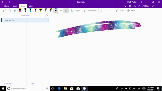 OneNote les permite convertir sus notas escritas a mano en texto, lo cual las vuelve más presentables y fáciles de leer. ¡Incluso preservarán el tamaño y color de su tinta, así como efectos atractivos como un arcoíris y una galaxia!