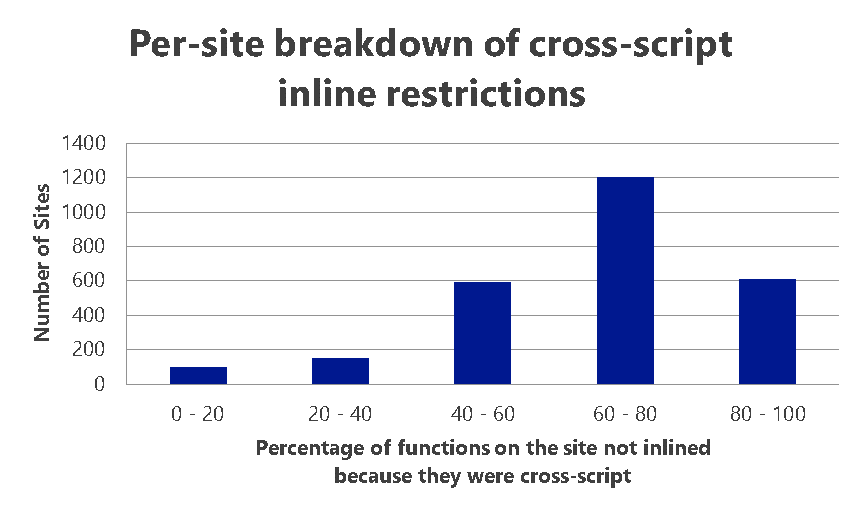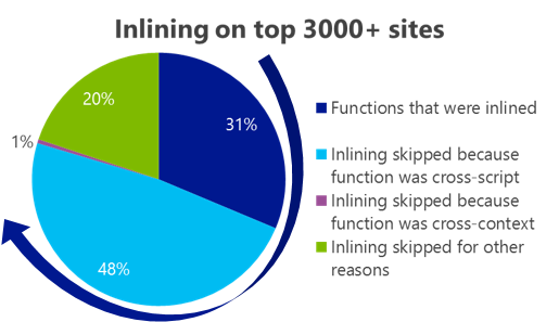 During the development of Windows 10 and Microsoft Edge, we gathered some data from the existing web to understand how Chakra’s inlining optimization was working on the web. We looked at a randomly selected sample of 3,000 sites from the list of top 10,000 sites and following is what we found: