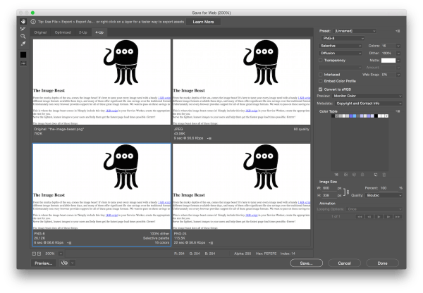 - Optimize and then optimize some more — Sometimes it pays to take multiple runs at optimization (as I did with the images) because every piece of software optimizes differently;