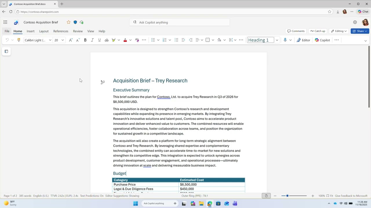 The Copilot-inspired new tab page combines search and chat in one intelligent box, and offers quick access to files, calendar, and personalized prompts—keeping everything your workforce needs at their fingertips. It’s also the starting point for the Daily Briefing—a curated summary of meetings, tasks, and priorities based on browsing tabs and the graph. No more digging through emails or juggling apps—your workforce can stay focused on what matters most.