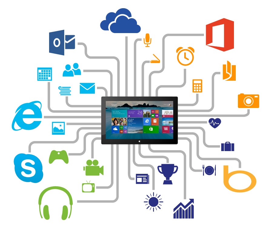 Наша цель состоит в том, чтобы Windows предлагала потребителю наилучшие возможности на любом устройстве: лучший Интернет — с Internet Explorer, лучшее облачное хранилище — SkyDrive, лучшая почта — с Outlook.com, лучший в мире набор для повышения эффективности работы с документами — в Office и многое другое. Ниже – перечисление и краткое описание приложений и сервисов, которые войдут в базовый набор вашего нового Windows-устройства.