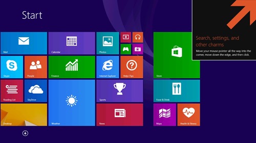 Как можно заметить, в Windows 8.1 больше на демонстрируется видеоруководство по Windows при первом входе пользователя в систему. Вместо этого после начала работы в Windows 8.1 на экране появляются советы: