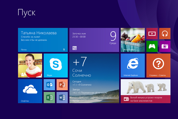 Плитки. Все, что вам нужно, теперь размещено на плитках. Многие плитки – это не просто статическая картинка, а автоматически обновляющаяся лента, позволяющая вам видеть последние новости, погоду или сообщение, даже не открывая приложение.