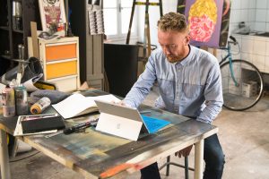 Прежде чем роспись украсит стену, пройдут многие часы тщательной проработки цифрового изображения. Иногда художник работает у себя в студии, окруженный знакомыми инструментами, но часто порыв вдохновения застает его далеко от рабочего места. Благодаря Surface художники могут мгновенно приступить к работе, где бы они ни находились.