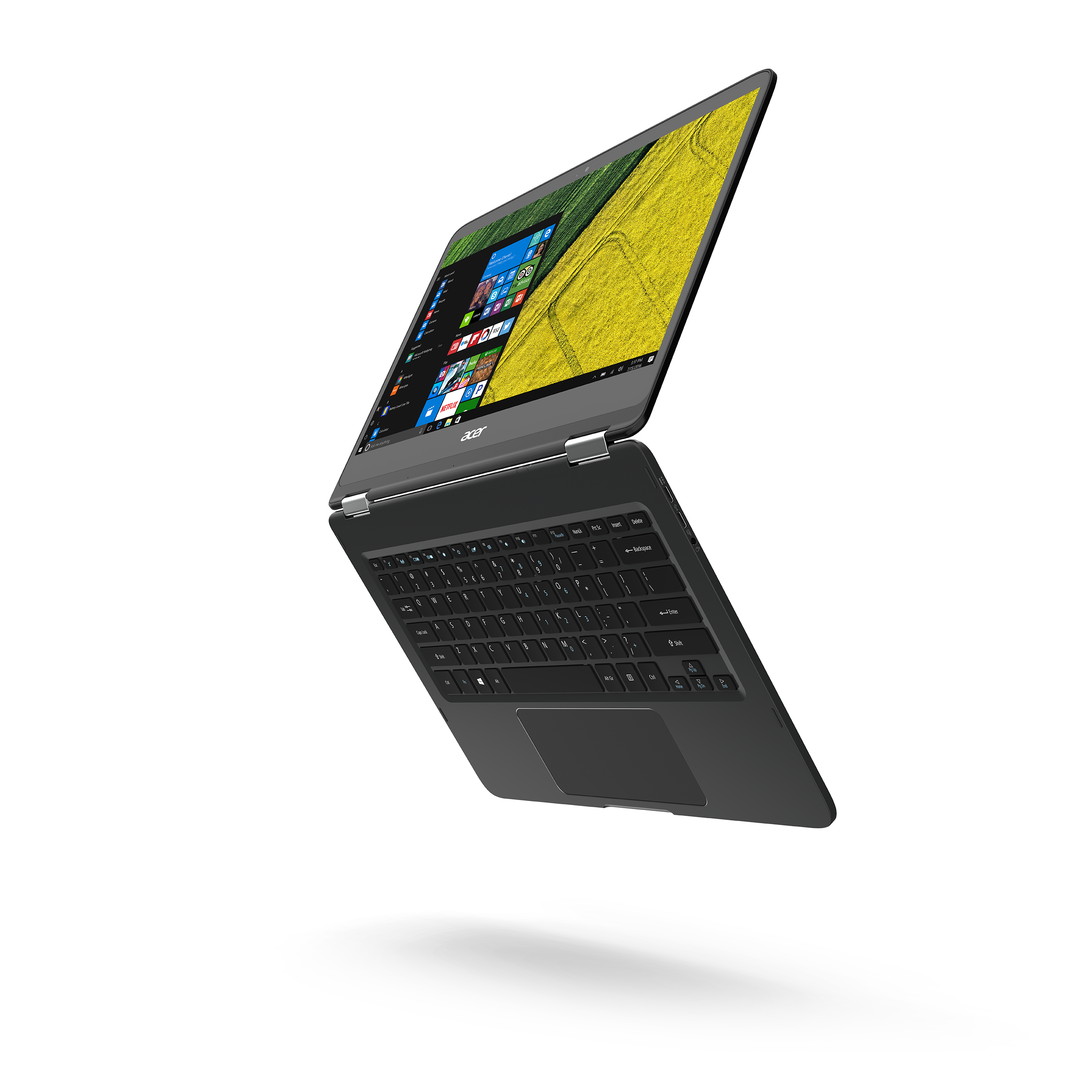 Тоньше, чем стандартная упаковка для DVD, этот ноутбук-трансформер стал самым тонким устройством своего форм-фактора в мире. Его толщина составляет всего 10,98 мм при весе 1,2 кг, Acer Spin 7 оснащен сенсорным 14-дюймовым Full HD-дисплеем с матрицей IPS, заключенным в компактный алюминиевый корпус unibody, по размерам не превосходящий стандартные 13-дюймовые (33 сантиметра) ноутбуки.